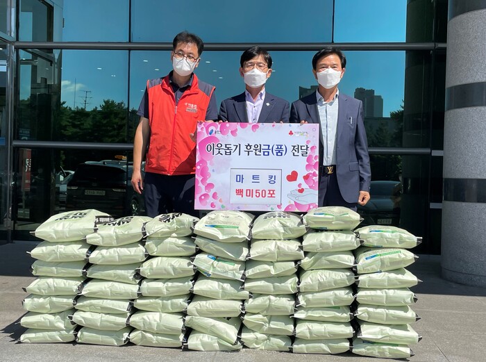 ▲ (기흥구) 마북동 소재 마트킹 구성점 김희봉 대표 쌀 10kg짜리 50포 기탁. |