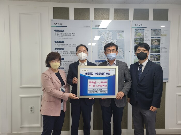 ▲ 영문의료재단 다보스병원(이사장 양성범) 3000만원 상당의 쌀 266포와 라면 100박스 기탁. 용인시 제공 |