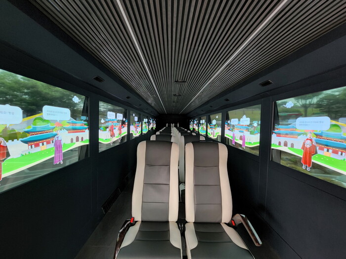 ▲1795년으로 여행을 떠나는 XR 버스 내부 T-OLED 창문에 관광 정보가 표출되고 있다. |