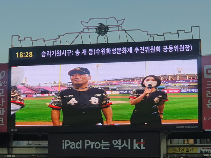 6일에는 수원 kt위즈파크에서 열린 kt위즈와 한화 이글스 경기에 앞서 송재등 수원화성문화제 추진위원회 공동위원장이 ‘제59회 수원화성문화제’ 성공을 기원하며 시민대표로서 시구했다.