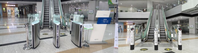▲1층 에스컬레이터 스피트게이트 철거전.후 모습. 성남시 제공 |