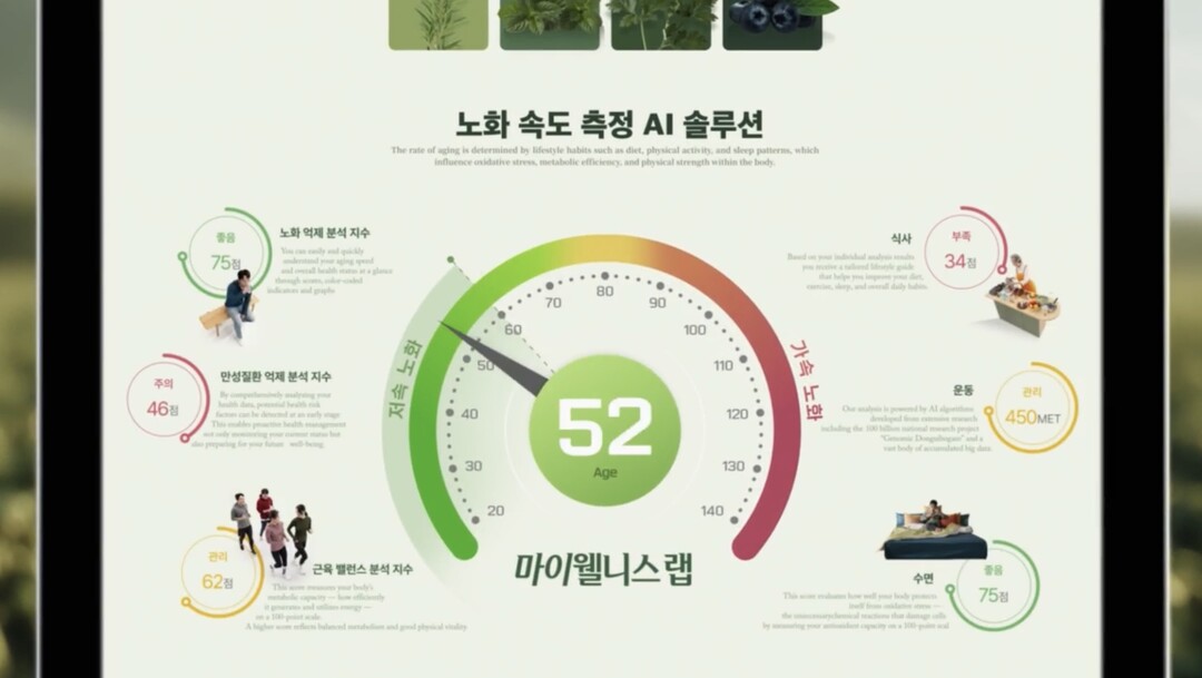 이번 광고 캠페인은 저속 노화를 위해 ‘마이웰니스 랩’이 지향하는 핵심 가치와 역할을 명확하게 전달하는 데 초점을 맞췄다. 노화속도 측정 AI 솔루션을 기반으로, 플랫폼을 통해 확인 가능한 주요 건강 지표와 결과를 직관적으로 제시해 소비자들이 변화의 필요성을 쉽게 체감하도록 돕는다.