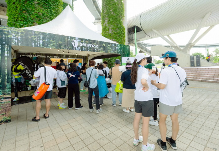 ‘그린야크’ 존에서는 국내 폐페트병을 재활용하는 블랙야크의 ‘플러스틱(PLUSTIC)’ 제품 전시를 비롯해 자원 순환 공정 전 과정을 눈으로 볼 수 있도록 공간을 함께 마련해 재활용에 대한 이해도를 높였다.