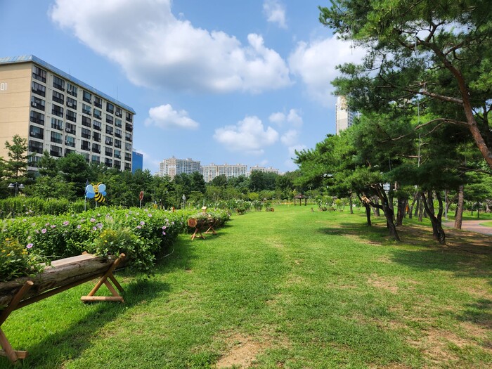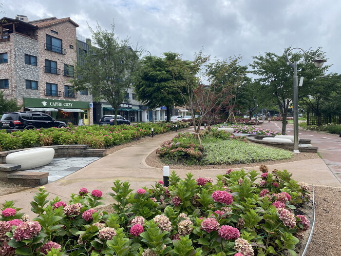 ▲신동수변공원에 수국정원이 조성된 모습. |