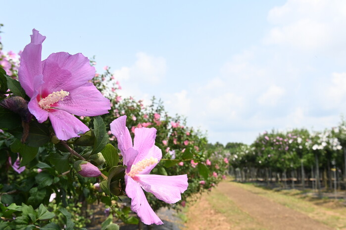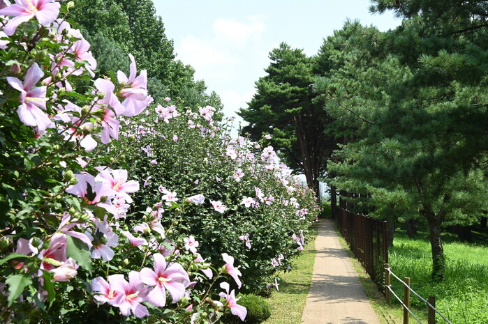 ▲국립산림과학원 진입로에 무궁화가 가로수로 활용되고 있다. |