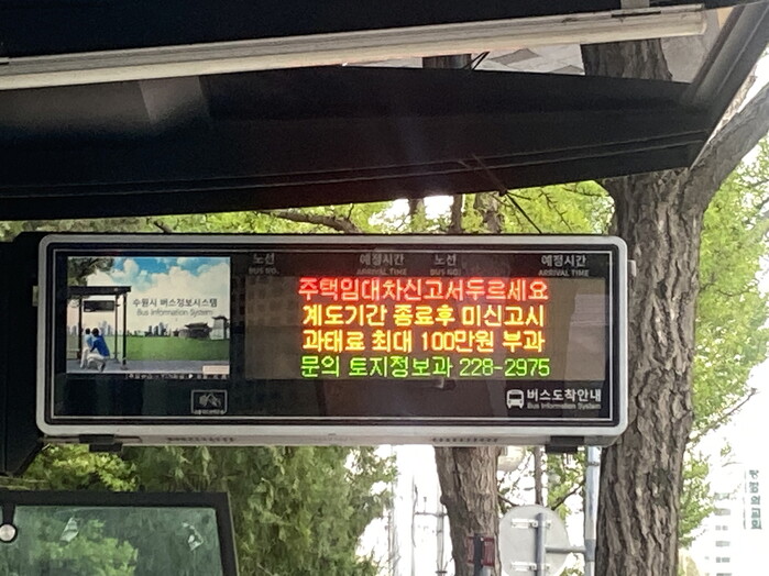 또 버스 도착안내 정보시스템(BIS), 공동주택 관리사무소 게시판, 각 구·동 민원실 등에서 주택임대차신고 제도를 안내하고 있다.