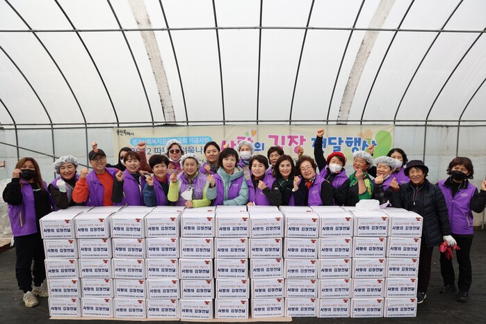 [로컬세계=김병민 기자]경기 용인특례시는 (사)경기도여성단체협의회 용인시지회가 지난 16일 처인구 백암면 소재 시우뜰에서 어려운 이웃을 돕는 ‘사랑의 김장 나눔’ 행사를 열었다고 17일 밝혔다.