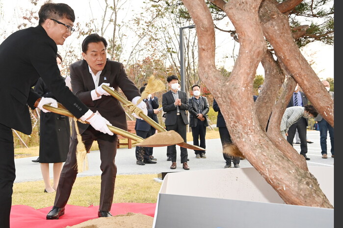 | ▲ 이재준 수원시장(오른쪽)이 개장 기념 식수를 하고 있다. |