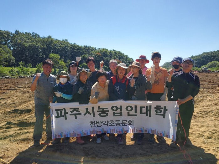 한방약초봉사단은 파주시 농업인대학 허준약초반 수강생으로 구성된 봉사단체로, 코로나19 장기화로 인한 인건비 상승 등으로 일손이 부족해진 농가에 조금이나마 도움이 되고자 봉사활동에 참여하고 있다.