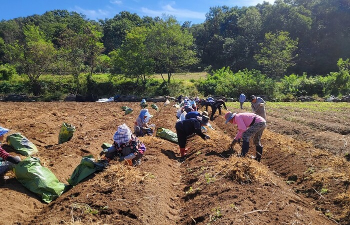 ▲ 인삼 재배농가 채굴 봉사. 파주시 제공 |