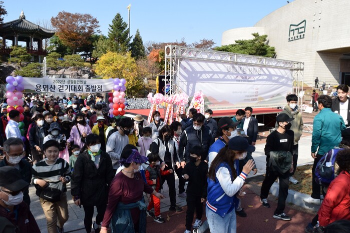 용뫼산 걷기대회에선 참가자 300여명이 경기도어린이박물관 산책로 입구에서 출발해 용뫼산 1쉼터 전 공터까지 왕복하며 가을 정취를 만끽했다.