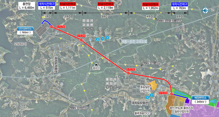 ▲용인 반도체클러스터 전력공급시설 설치 계획 노선도. 용인시 제공 |