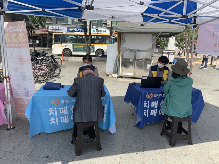 이날 덕양구보건소는 치매안심버스에서 치매선별검사 및 치매상담을 진행하고 부대행사로 ▶치매예방수칙 3.3.3 교육 ▶치매인식개선을 위한 OX퀴즈 ▶치매파트너 모집 ▶고양시 3개구 보건소가 공동 개최하는 치매극복의 날 기념 비대면 걷기 행사 홍보를 진행했다.