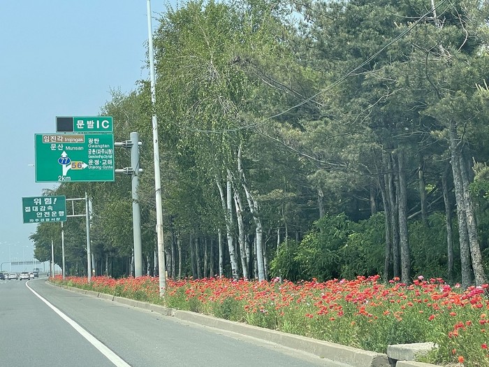 [로컬세계 이영원 기자]경기 파주의 관문인 자유로에 빨간 꽃양귀비가 활짝 피어 파주시를 방문하는 관광객들의 눈길을 사로잡고 있다.