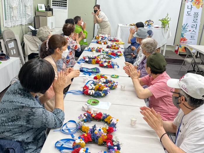 ▲ 농림치유 프로그램 ‘은빛 놀이터’ 플라워리스 만들기 프로그램. 고양시 제공 |