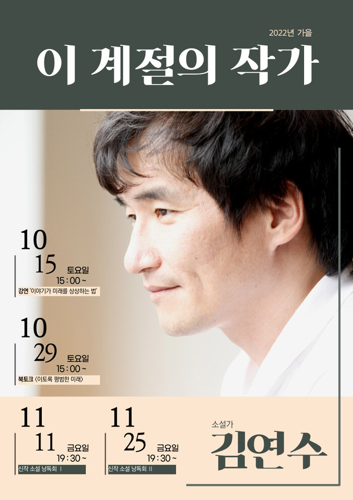 10월에는 토요일 2차례 김연수 작가를 만나볼 수 있다.
