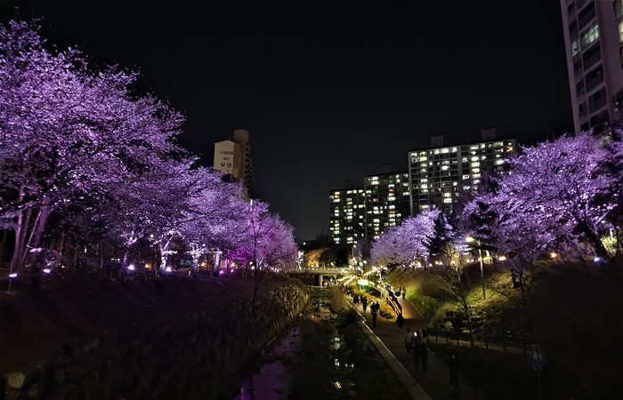 정평천 하천변에서 벚꽃과 어우러진 아름다운 야경을 즐겨보는 것은 어떨까?