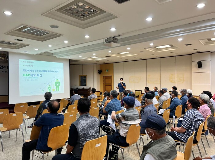 ▲ 백옥쌀 GAP생산단지 농업인 교육 모습. |