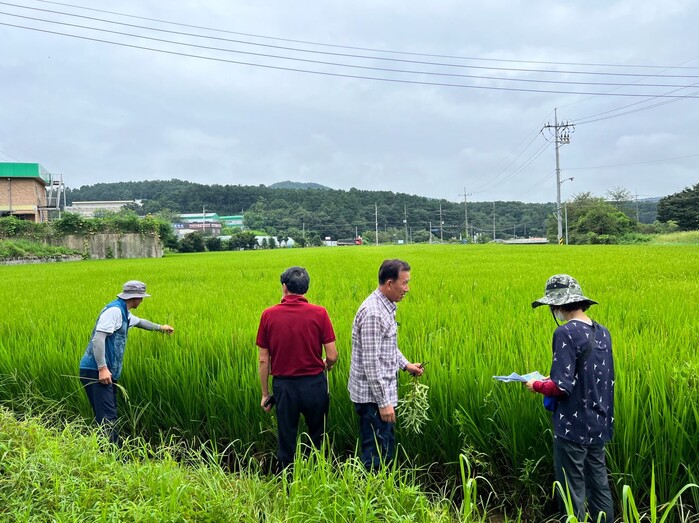 ▲ 백옥쌀 GAP생산단지 재배지 심사 모습. |