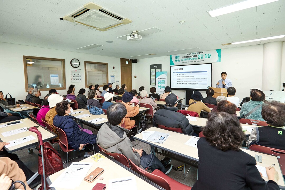방배노인종합복지관을 방문한 어르신들이 노인 호흡기 질환 관리의 중요성에 관한 건강강좌에 참여하고 있다. 서울사회복지공동모금회 제공