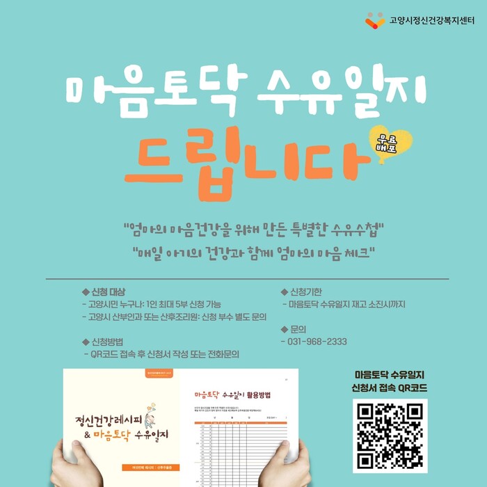 [로컬세계=이영원 기자]경기 고양특례시 정신건강복지센터가 마음토닥 수유일지를 무료로 배포한다.