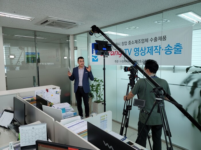 ▲수원시가 지역 내 우수기업의 해외 수출 및 홍보를 위해 국제 TV 영상을 제작하고 있다. |