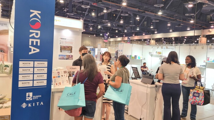 이 중 수원시의 지원으로 참가하게 된 5개 기업들의 부스에는 수원특례시의 CI가 선명하게 새겨져 있다. 수원시관 참가 업체는 ▲유전자 기술특성을 활용한 노화방지 화장품 제조업체 ‘네오리젠 바이오텍’ ▲반려동물 피모관리기를 제조하는 ‘다간’ ▲인체에 무해한 식품용 원료를 활용한 쿨매트 등 쿨링제품을 만드는 ‘오션플로우’ ▲나노필터를 활용한 마스크와 펩타이드에센스화장품을 제조하는 ‘케이제이글로벌’ ▲디즈니와 협업해 캐릭터 가습기와 욕실제품 등을 만드는 ‘포콘스’ 등이다. 수원시는 이들 기업에 부스 임차료 등 참가비와 운송료, 현지통역 등을 지원해 기업들이 새로운 판로 개척의 기회에 더 쉽게 다가갈 수 있도록 도왔다.