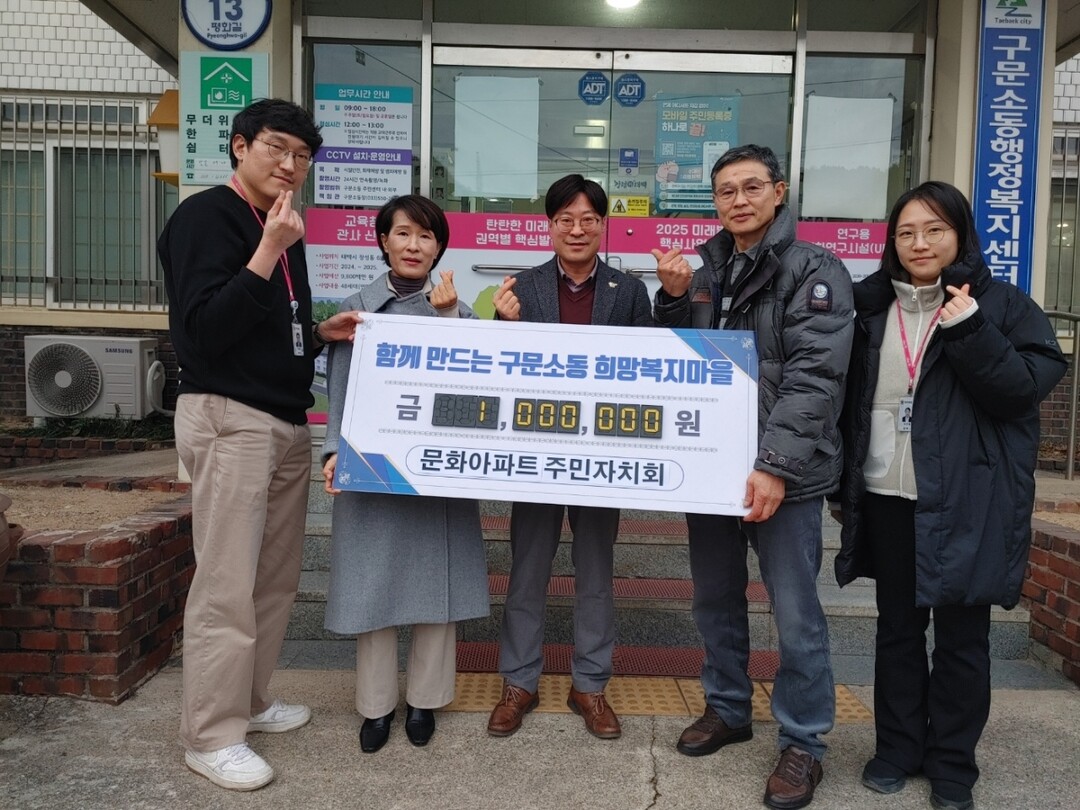 또한, 구문소동 문화아파트 주민자치회(회장 전인학)는 지난 26일 ‘함께 만드는 구문소동 희망복지 마을 만들기’ 성금 100만원을 기탁했다.