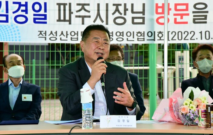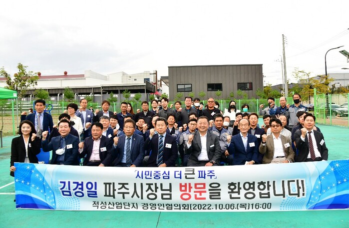 이날 간담회에는 김경일 파주시장, 이성철 파주시의장, 손형배 시의원, 류수동 적성산업단지 경영인협의회장 등 관계자 60여 명 참석했다.