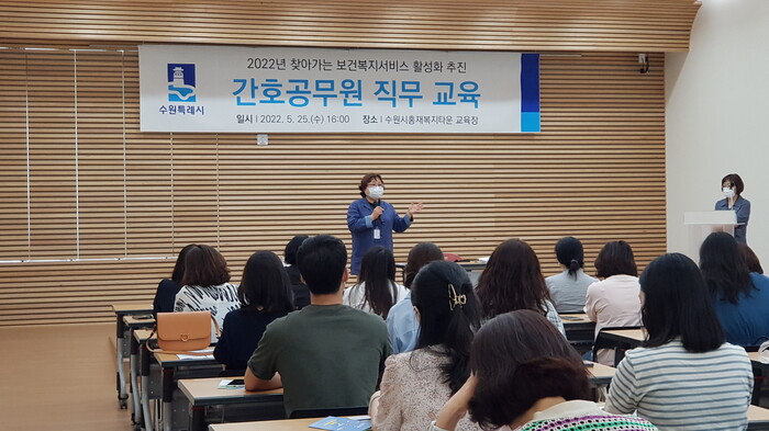 한편 수원시는 업무 담당자들의 역량을 강화하기 위해 지난 25일 권선구 수원시홍재복지타운에서 ‘2022년도 찾아가는 보건복지서비스 활성화를 위한 간호공무원 직무 교육’을 진행했다.