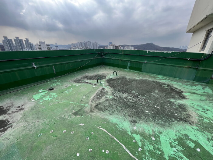 | ▲ 공동주택 노후시설 보조금 지원 대상 건물의 현장 모습. 용인시 제공 |