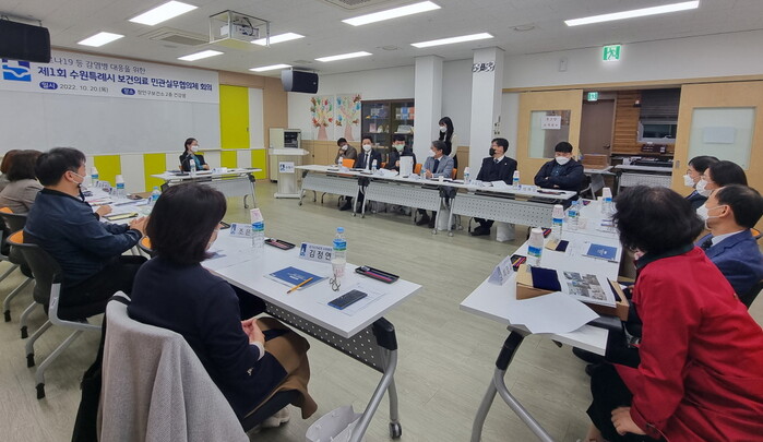 | ▲ 지난 20일 장안구보건소에서 진행된 '2022년 제1회 수원특례시 보건의료 민관실무협의체 회의' 모습. 수원시 제공 |