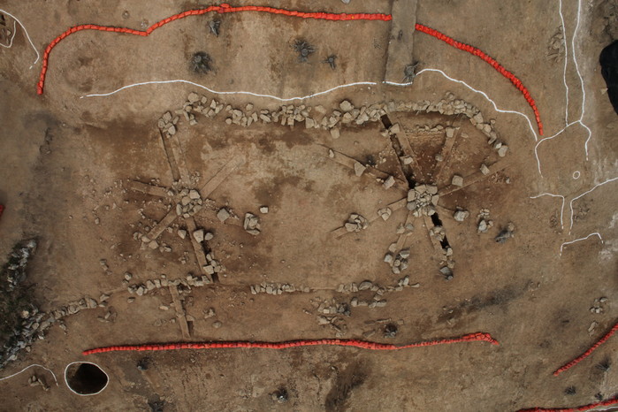 ▲할미산성 발굴조사에서 확인된 다각형건물지. |