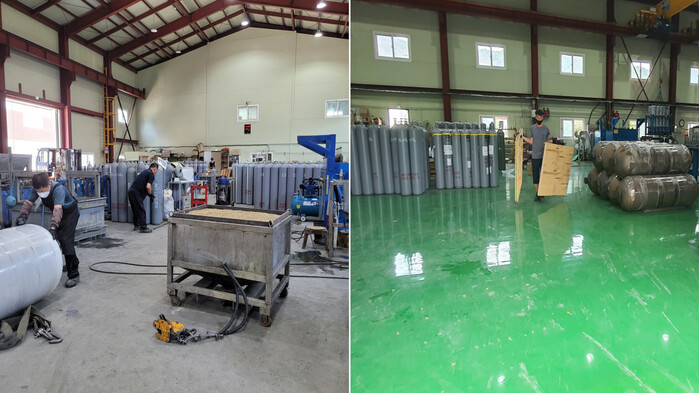 ▲관내 한 기업의 바닥도장공사 전후 모습. 용인시 제공 |