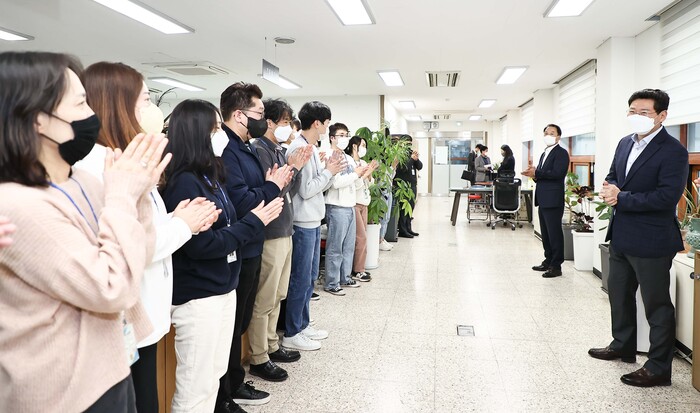 이 자리에서 이 시장은 “취임 후 읍·면·동을 먼저 돌다 보니 이제서야 구청을 방문하게 돼 미안한 마음이 크다” 며 “근무환경이 열악한데도 시민들을 위해 헌신적으로 일하는 직원들에게 진심으로 고맙다”고 말했다.
