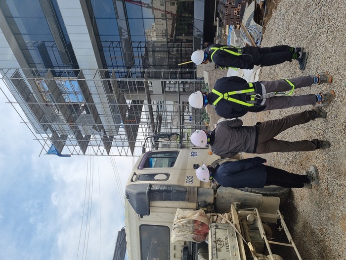 ▲용인시 관계자들이 처인구 중앙동 행정복지센터 신축 공사 현장에서 안전 점검을 진행 하고 있다. 용인시 제공 |