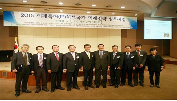 9일 오전 국회 헌정기념관에서 열린 ‘2015 세계특허(IP)허브국가 미래전략 심포지엄’에서 세계특허허브국가 추진위원회는 박 의원에게 위촉장을 전달했다.