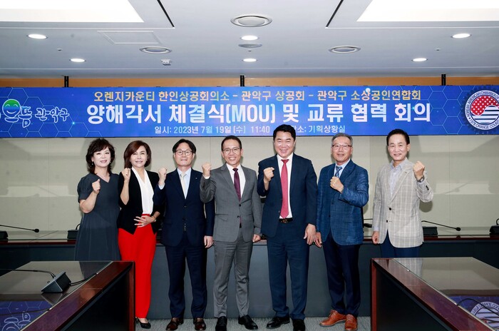 이날 양해각서 체결식에 참석한 박준희 관악구청장과 노상일 오렌지카운티 한인상공회의소 회장 등 양 기관 관계자들은 경제단체 교류 촉진 등 향후 비즈니스 발전 방안을 논의하는 뜻깊은 시간을 가졌다.