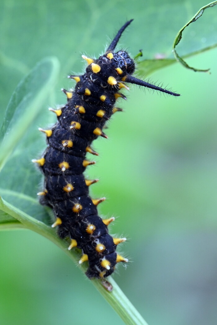 ▲서호공원 꼬리명주나비 생태정원에서 애벌레가 쥐방울 덩굴을 먹고 있다. |