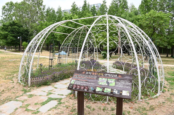 ▲쥐방울덩굴의 지주 역할 및 애벌레와 나비를 보호할 수 있도록 서호공원에 설치된 꼬리명주나비 생태정원. |