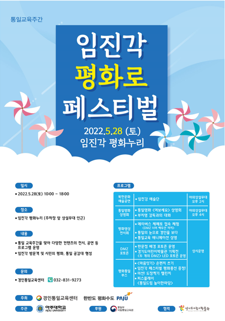 파주시와 경인통일교육센터가 주최하고 통일부 국립통일교육원에서 후원하는 행사로 임진각을 찾는 방문객 및 시민들에게 평화공존 분위기 확산 및 평화통일 공감대 형성을 위해 마련됐다.
