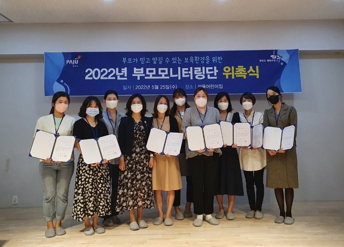 [로컬세계 이영원 기자]경기 파주시는 보육서비스 품질 향상을 위해 지난 25일 문산 선율어린이집에서 ‘2022년 어린이집 부모모니터링단’ 위촉식을 열고, 모티터링단 9명에게 위촉장을 수여했다.