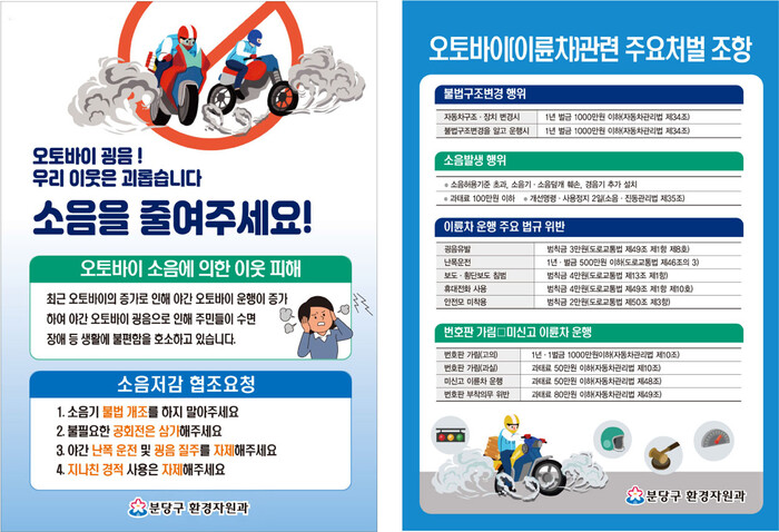 이날 캠페인은 야간 배달 오토바이 굉음으로 생활 불편을 겪는 주민들의 애로사항을 알려 운전자의 자제를 유도하려고 열린다.