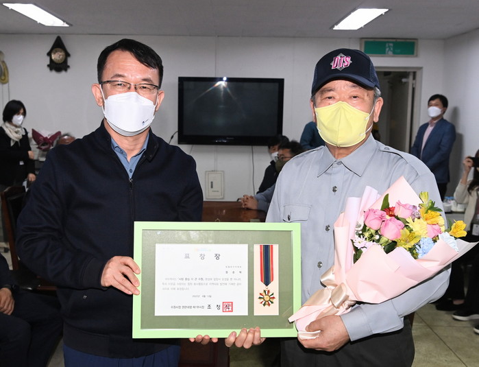 이날 표창 수여식에는 이귀만 권선구청장, 강태헌 권선사랑연합회장, 조병남 일월청구아파트 관리사무소장 등이 참석했다. 권선사랑연합회는 장순덕씨에게 격려금(온누리상품권)을 전달했다.