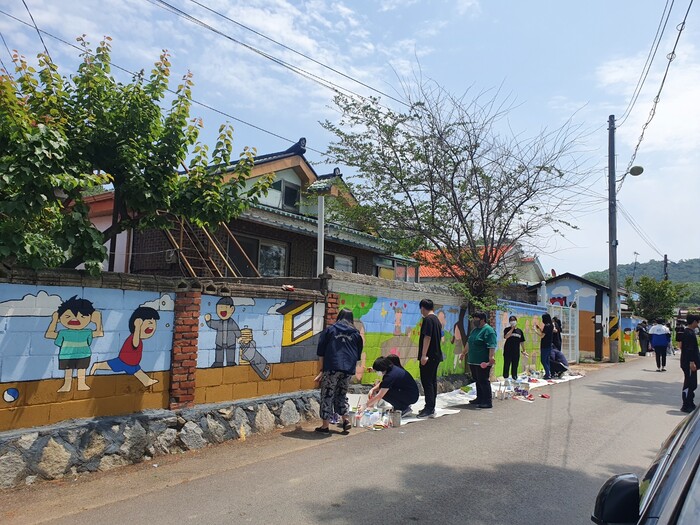 ▲ 학생들이 테마가 있는 마을 꾸미는 '벽화 그리기' 작업을 하고 있다. 파주시 제공 |