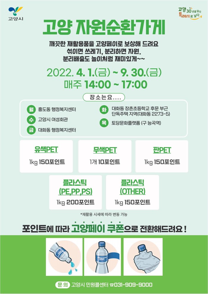 한편, 고양시는 시민들의 자발적인 분리배출 참여를 유도하기 위해 달리는 재활용가게와 자원순환가게를 운영하고 있다.