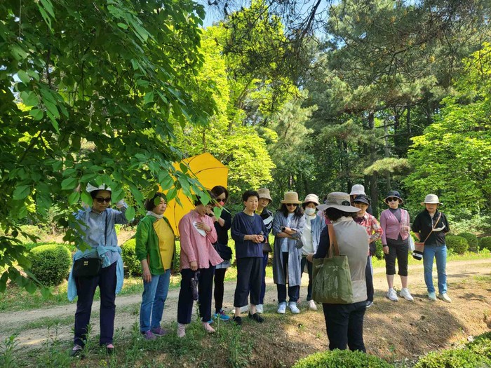 ▲서울대학교 수원수목원 숲해설 프로그램에 참여하고 있다. 수원시 제공 |