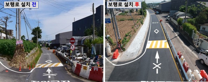 이 도로는 국도에서 마을로 진입하는 도로로, 차량 통행이 잦은데도 불구하고 보도가 설치돼 있지 않아 주민들이 갓길을 보행로로 이용하는 등 안전사고 위험이 높았던 곳이다.