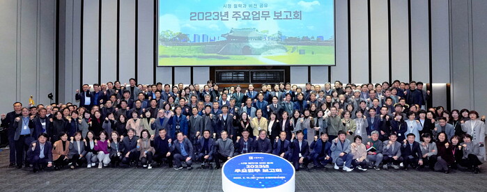 | ▲ 2023년 주요업무 보고회에 참석한 간부 공직자들이 함께하고 있다. |