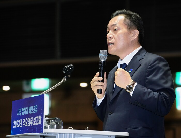 이재준 시장, 조청식 제1부시장, 황인국 제2부시장, 5급 이상 간부 공무원 등 220여 명이 참석한 이날 업무보고회에서는 수원시 각 실·국장, 사업소장이 2023년 주요 업무를 보고했다.